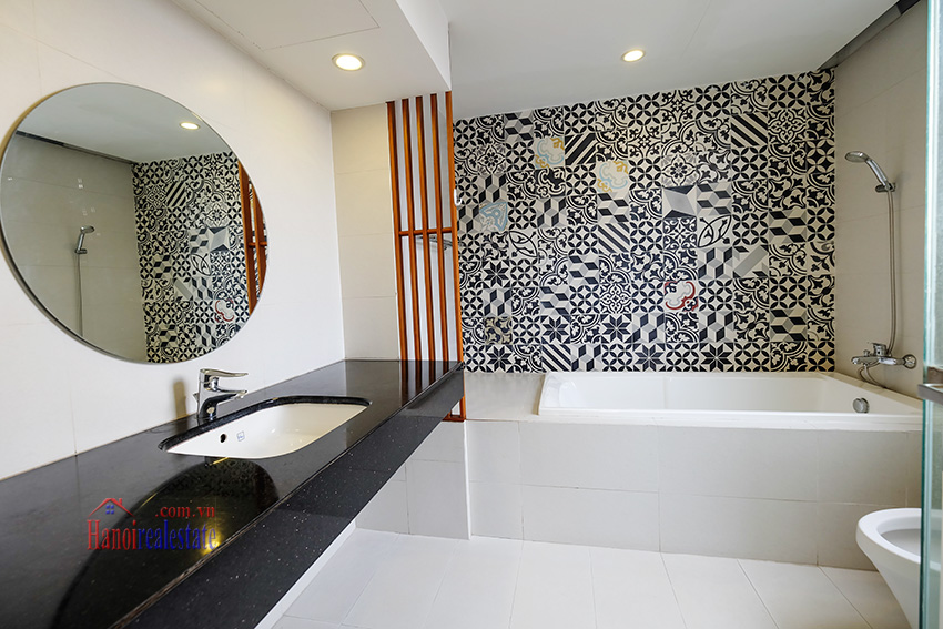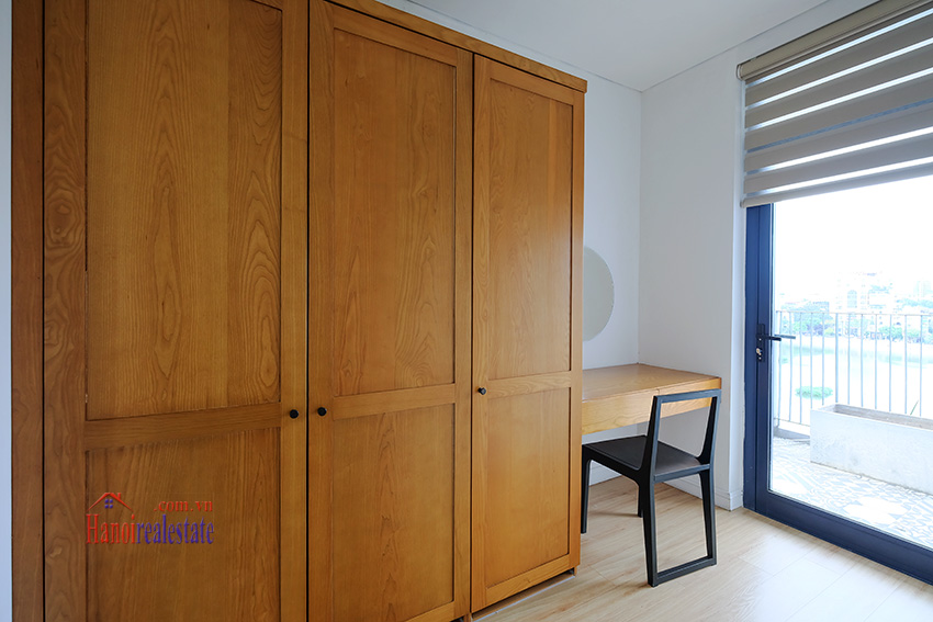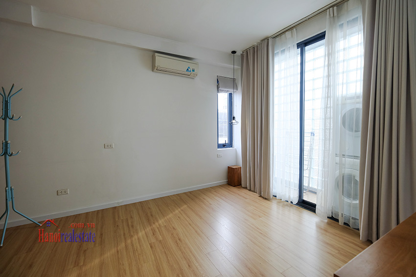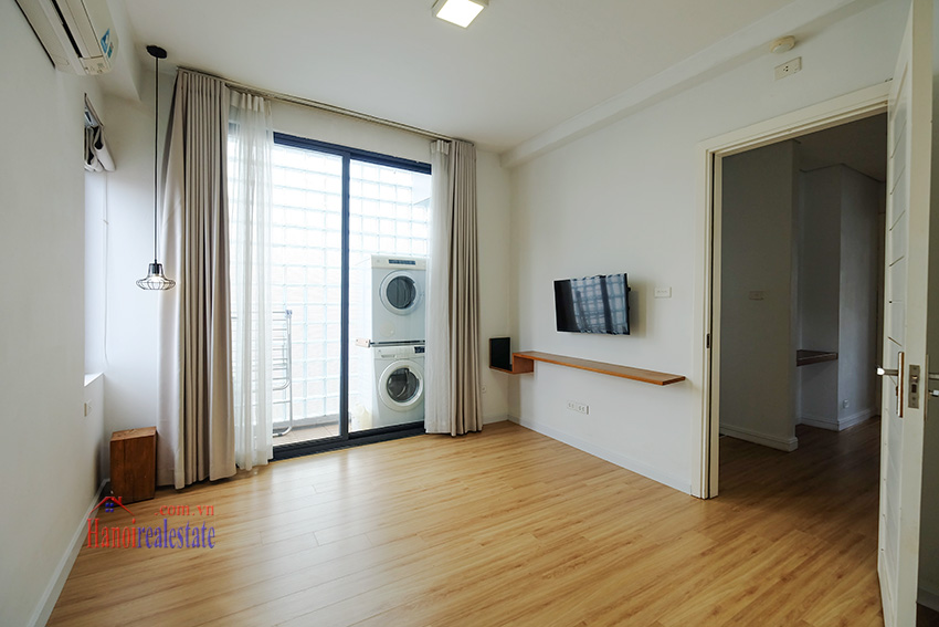 If you are looking to live close to the French Hospital, this modern duplex apartment on O Dong Lam Street is well worth considering. Nestled in a quiet alley just a few steps from the lake, the property offers both a peaceful setting and convenient access to the surrounding area. The apartment features a contemporary design and enjoys a beautiful view overlooking Ba Mau Lake.