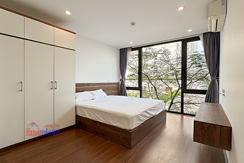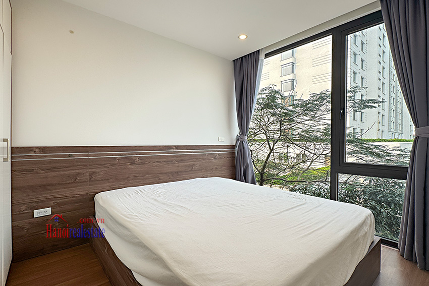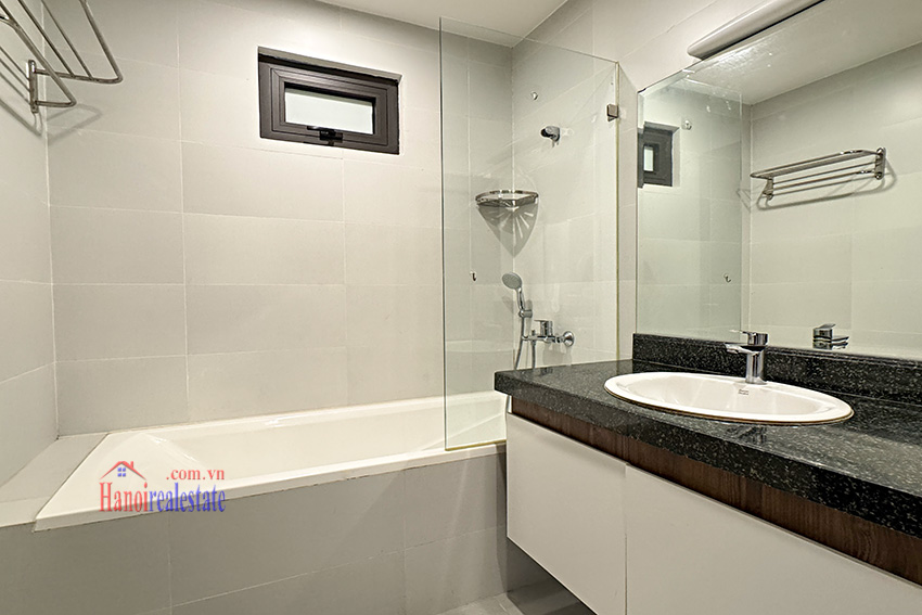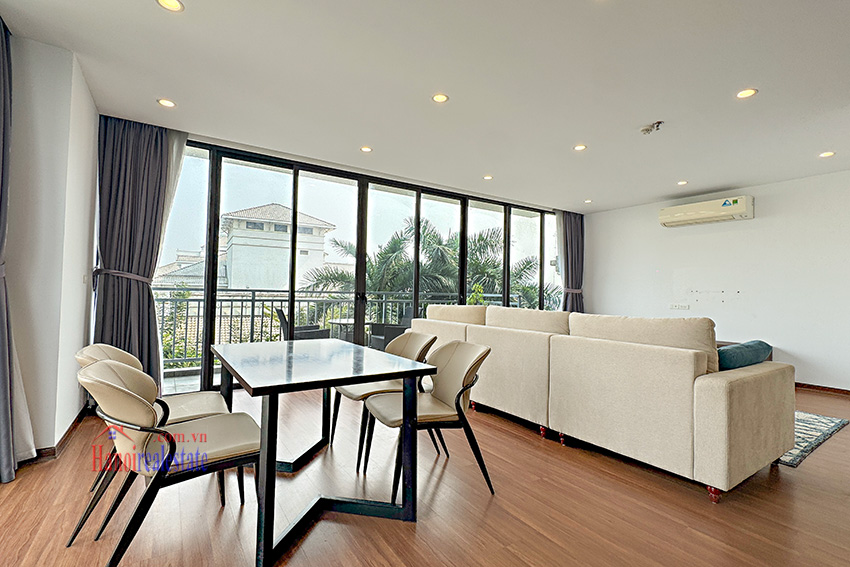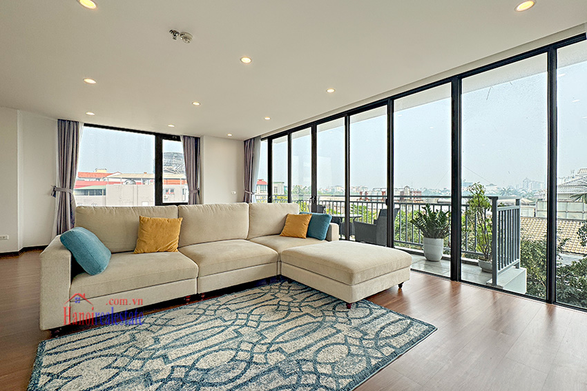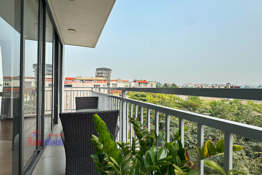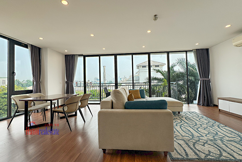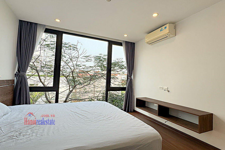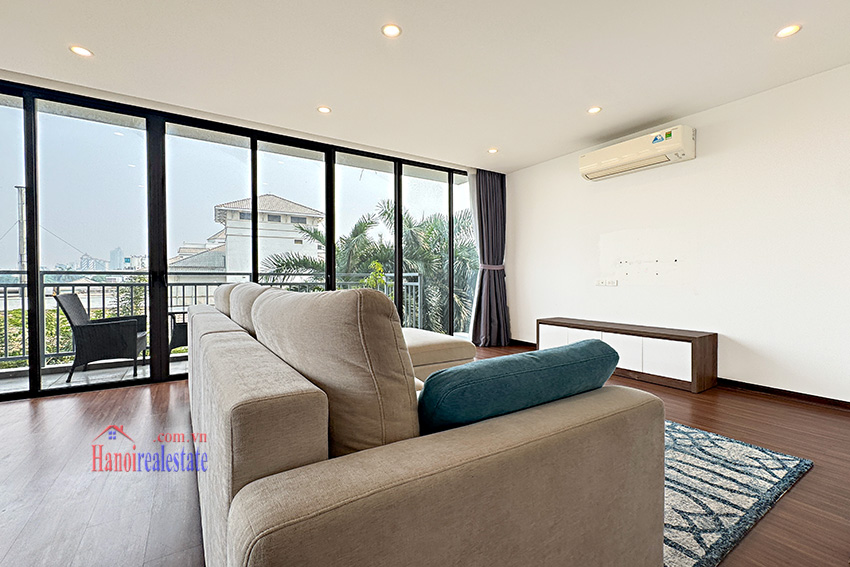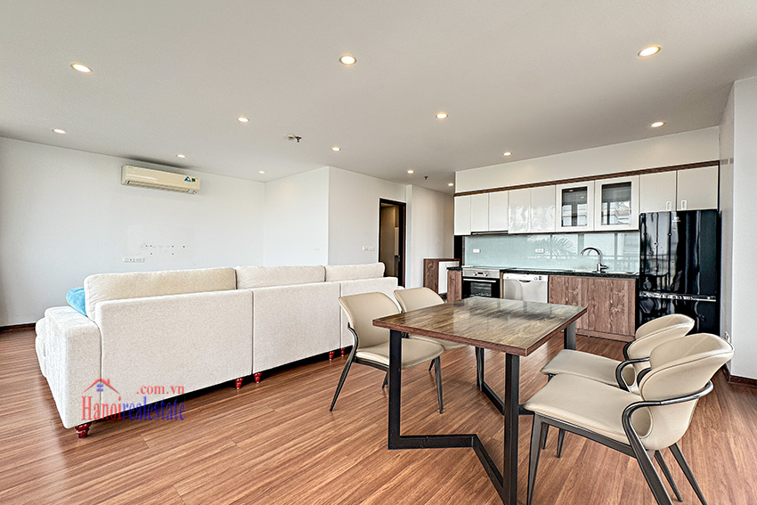 This apartment is conveniently situated on Tu Hoa Street, overlooking to West Lake and Intercontinental hotel. The apartment is brand new, composed of 3-bedrooms, 2-bathrooms, open airy living-room with floor to ceiling windows and balcony, well-equipped kitchen. The whole apartment is always full of natural light during the daytime. It comes with fully furnished, wooden floors, all the reserve air conditioners, washer & dryer