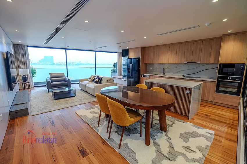 Brand-new 7th-floor 130m² apt with direct West Lake view, 2BR 2BA, premium appliances, air...