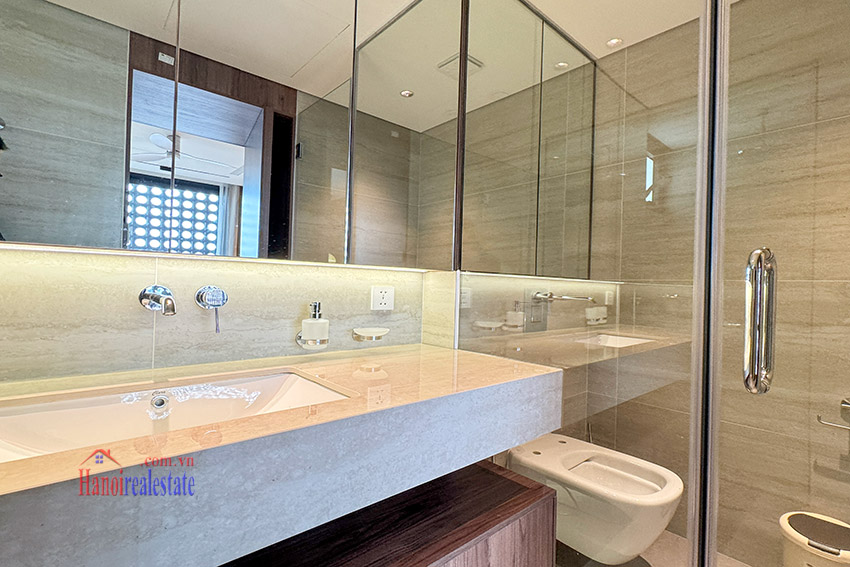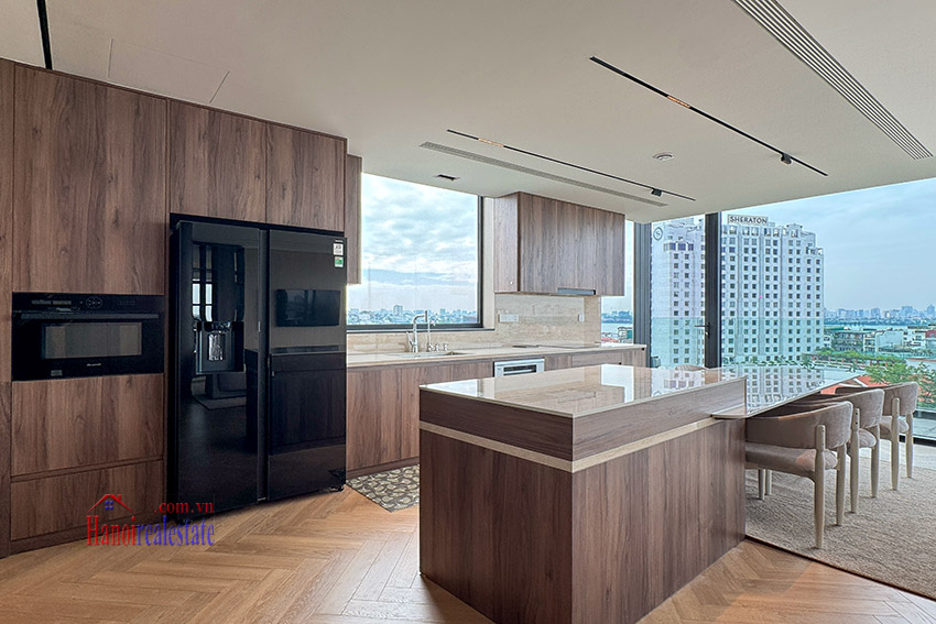 This modern apartment is situated on a high floor of a brand-new building on Xuan Dieu Street, with direct car access. The living area of 120m2 includes a bright and spacious living room with floor-to-ceiling windows opening onto a balcony overlooking West Lake, a modern open-concept kitchen fully equipped with high-quality appliances, 2 comfortable bedrooms with big built-in wardrobes, and 2 stylish bathrooms with walk-in showers.