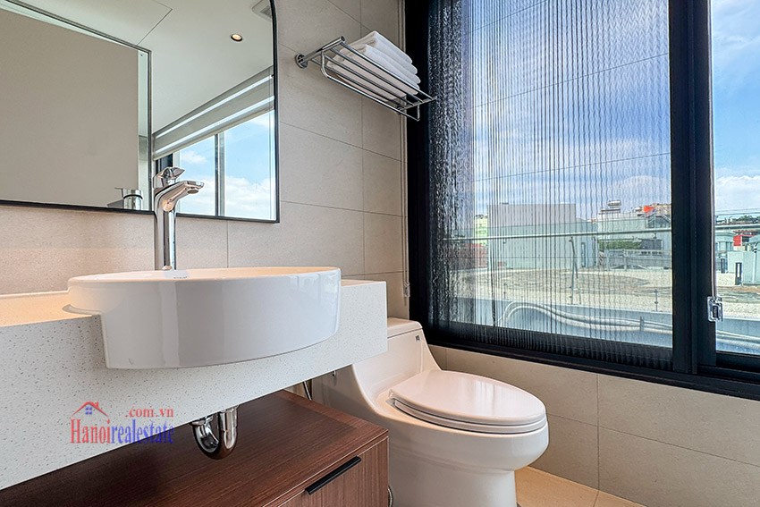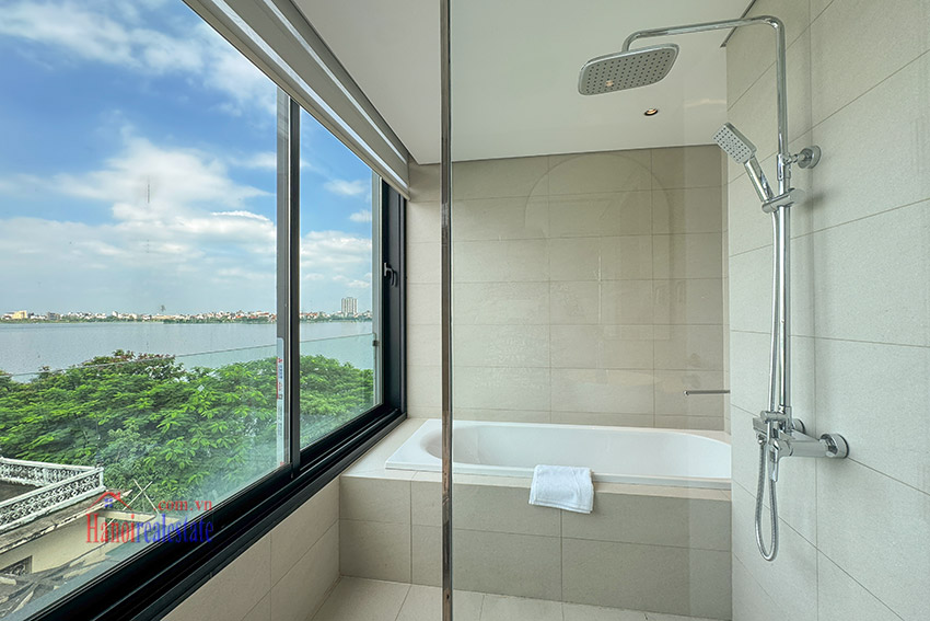 If you’re dreaming of a modern apartment with a beautiful lake view in Tay Ho, this could be your ideal new home in Hanoi. Located on a high floor of a building on Ve Ho Street, the apartment offers panoramic views of West Lake from a spacious balcony, perfect for relaxing or entertaining.