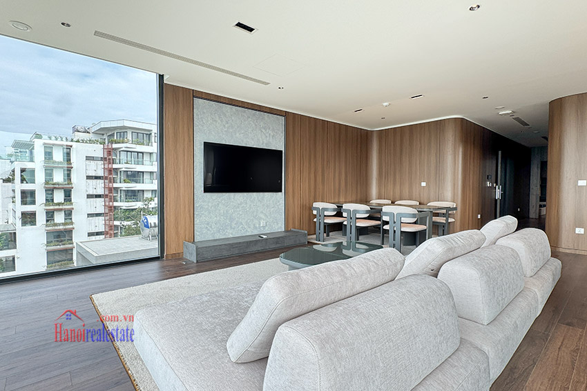 Perched on the 7th floor of a brand-new building along the vibrant Xuan Dieu Street, this 130m² apartment offers unobstructed panoramic views of West Lake – where shimmering water meets the cool breeze every morning.