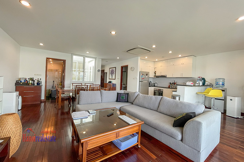 Top-floor apartment for rent with stunning sunset views over West Lake, located in the desirable Tay Ho area.