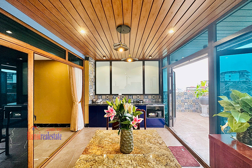 The apartment comes fully furnished with high-quality furniture and modern amenities, ensuring a comfortable and convenient lifestyle. Located in a quiet and pleasant neighborhood near West Lake, the building offers easy access to restaurants, cafes, shops, and is convenient for traveling to the city center or Noi Bai International Airport.