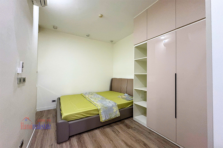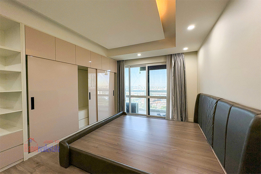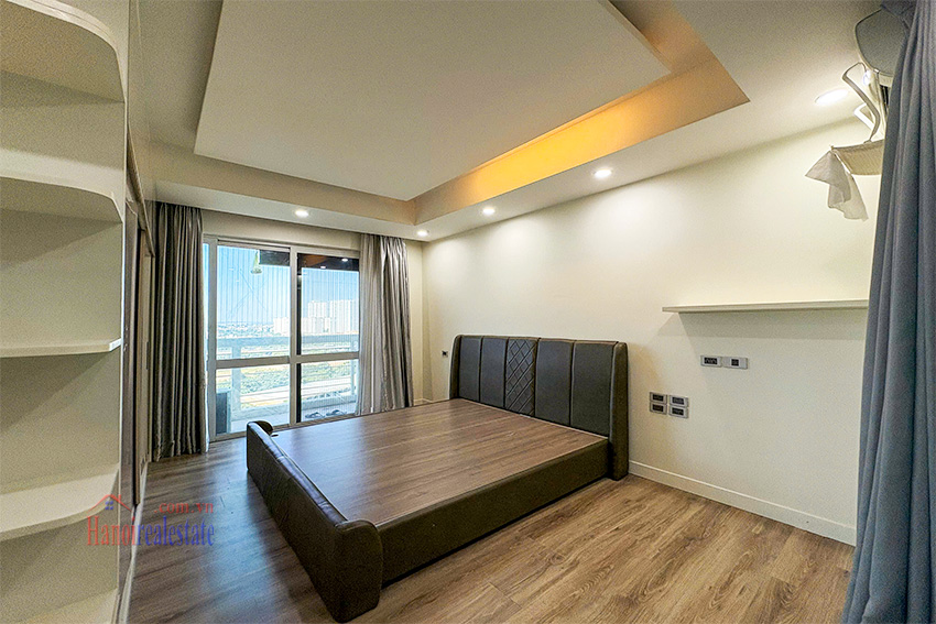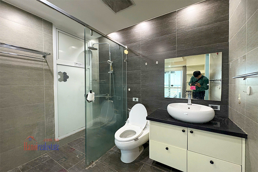 This apartment for rent, located in the E1 (Concord) Tower of the prestigious Ciputra Hanoi urban area, offers a generous living space of 123 square meters. This mid-floor unit is thoughtfully designed with three bedrooms and two modern bathrooms.