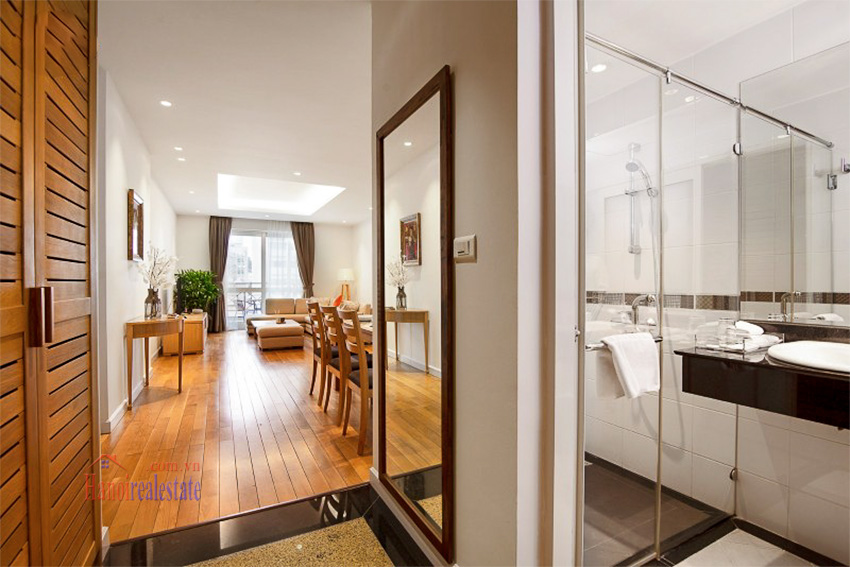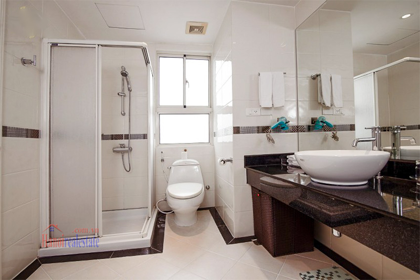 Phòng tắm: Căn hộ có 2 phòng tắm riêng biệt. Một phòng trang bị bồn tắm nằm và vách tắm kính, phòng còn lại sử dụng cabin tắm đứng hiện đại.