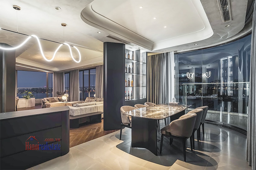 Căn hộ tọa lạc tại khu vực phố Võng Thị, quận Tây Hồ, với thiết kế thông tầng (duplex) có tổng diện tích sử dụng 280m2. Đây là loại hình căn hộ diện tích lớn, hướng trực diện ra phía Hồ Tây, phù hợp cho nhu cầu tìm thuê không gian sống hiện đại và yên tĩnh.