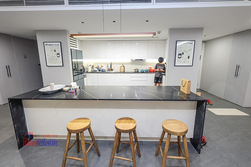 Căn hộ có diện tích 300m², thiết kế gồm 4 phòng ngủ và 3 phòng vệ sinh, được trang bị đầy đủ nội thất chất lượng cao.