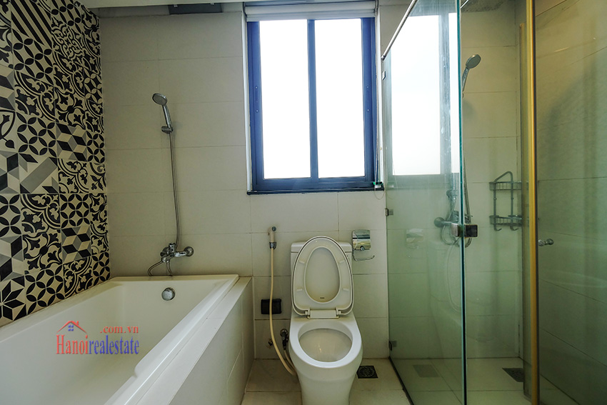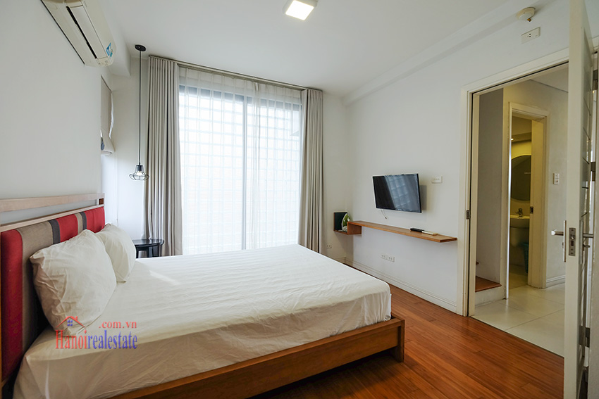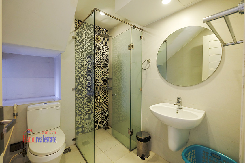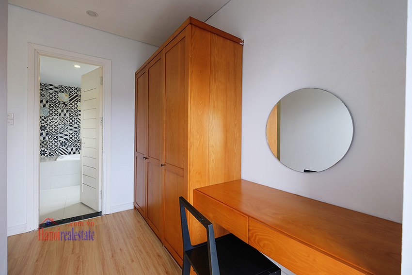 If you are looking to live close to the French Hospital, this modern duplex apartment on O Dong Lam Street is well worth considering. Nestled in a quiet alley just a few steps from the lake, the property offers both a peaceful setting and convenient access to the surrounding area. The apartment features a contemporary design and enjoys a beautiful view overlooking Ba Mau Lake.