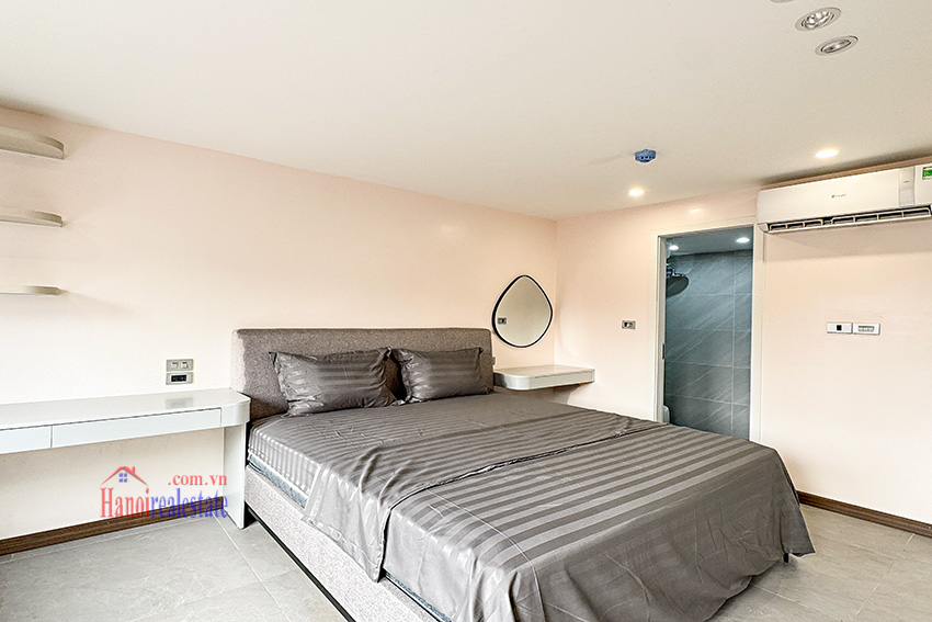 The apartment is fully furnished with high-quality, modern furniture and well-designed interiors, ensuring both style and functionality. The building is located in a peaceful neighborhood, yet it is very convenient for traveling to the Old Quarter or Noi Bai International Airport.