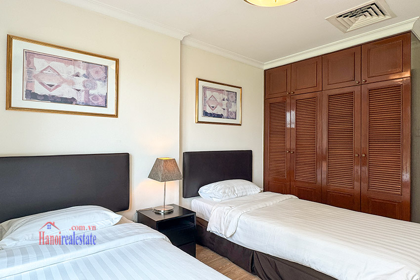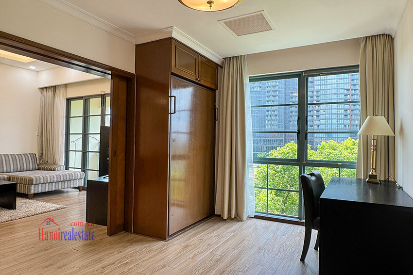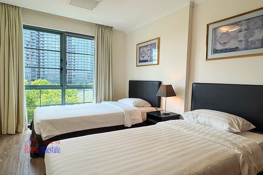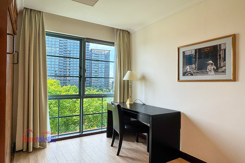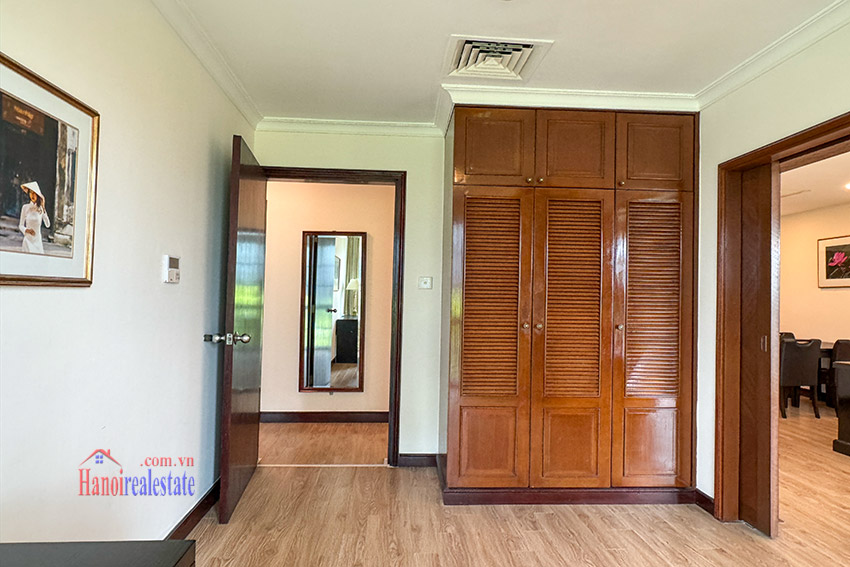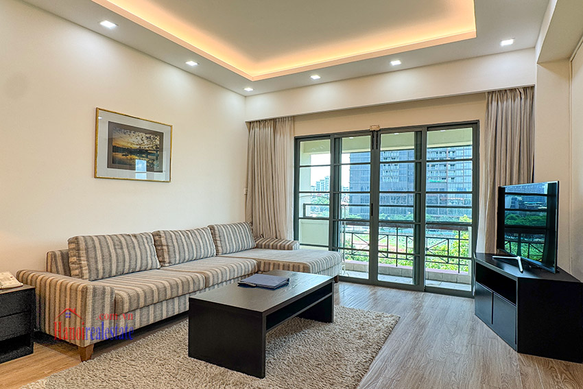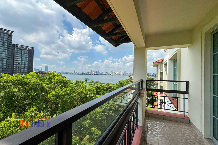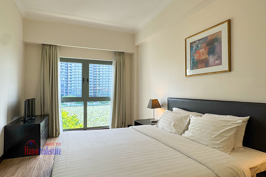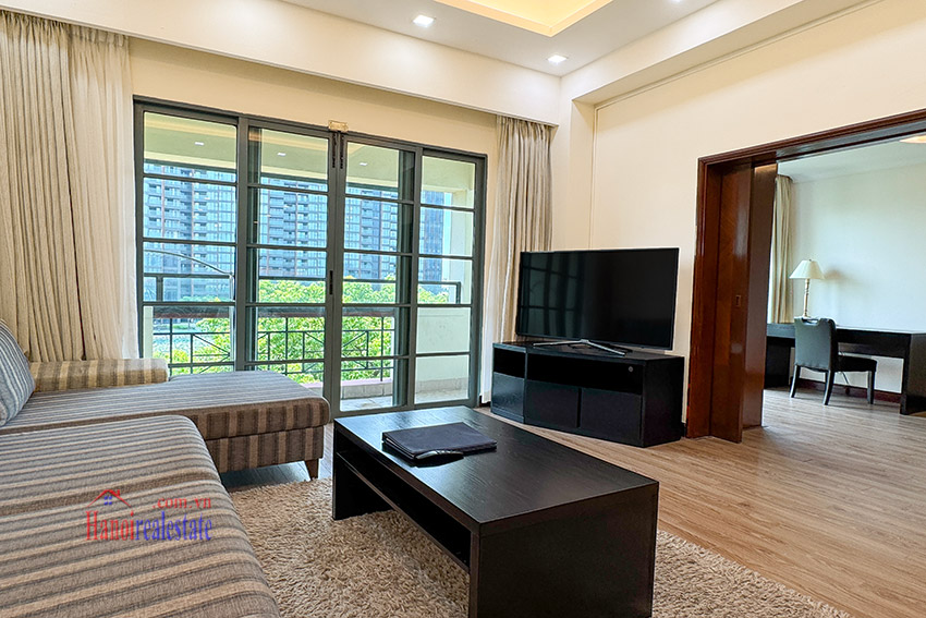 Size of the cozy, lovely view 03BRs apartment with balcony at Diamond Westlake is 128m2, located on middle floor of one of the villas. It’s fully equipped with wooden floor, and has a lot of natural light coming via the decent size of floor to ceiling windows, as well as a lovely balcony looking to Westlake.