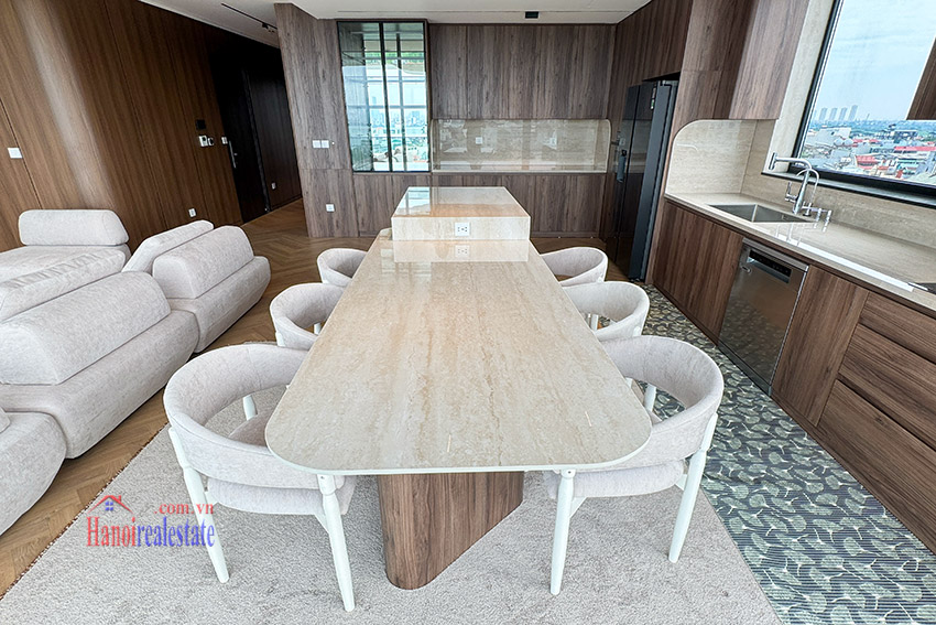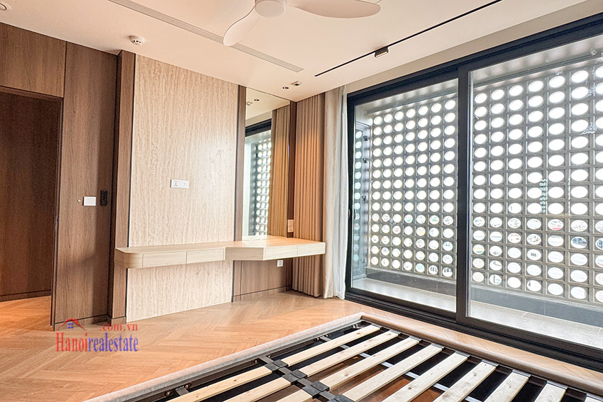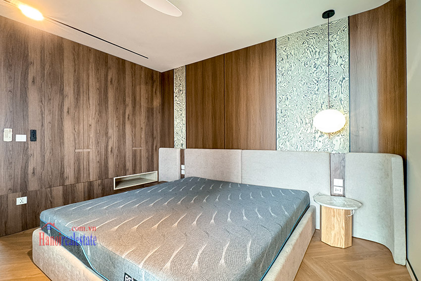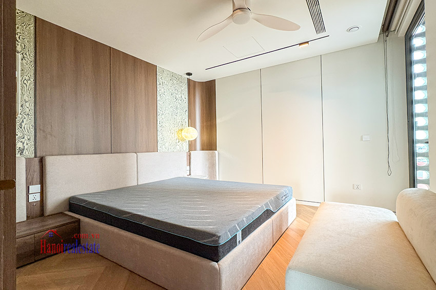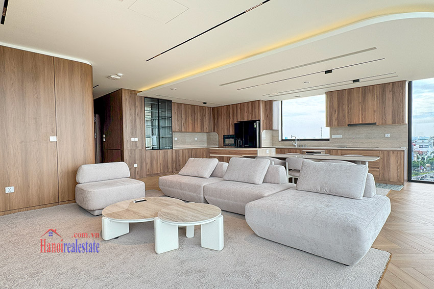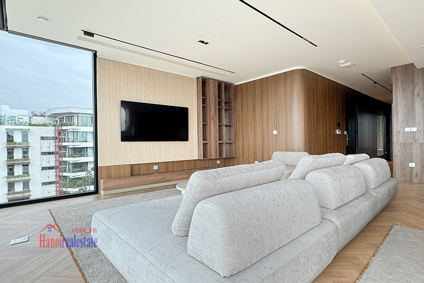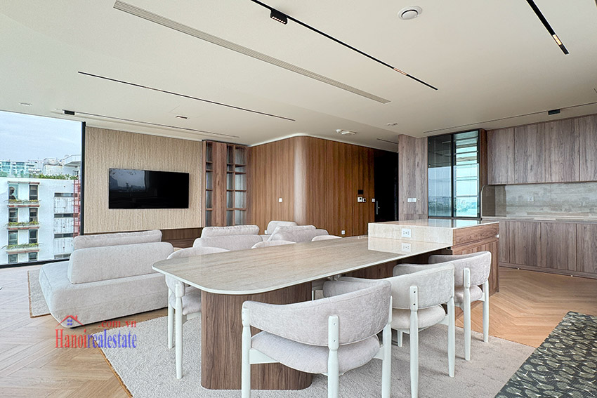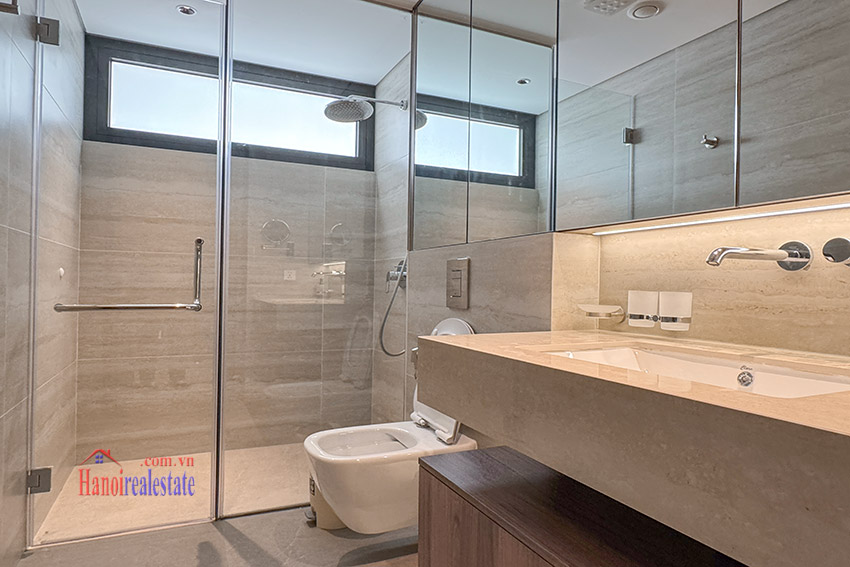 This modern apartment is situated on a high floor of a brand-new building on Xuan Dieu Street, with direct car access. The living area of 120m2 includes a bright and spacious living room with floor-to-ceiling windows opening onto a balcony overlooking West Lake, a modern open-concept kitchen fully equipped with high-quality appliances, 2 comfortable bedrooms with big built-in wardrobes, and 2 stylish bathrooms with walk-in showers.