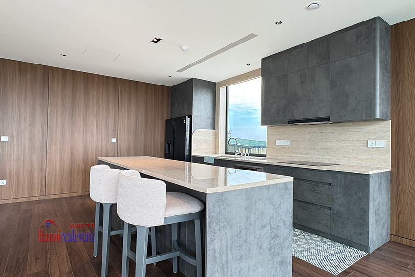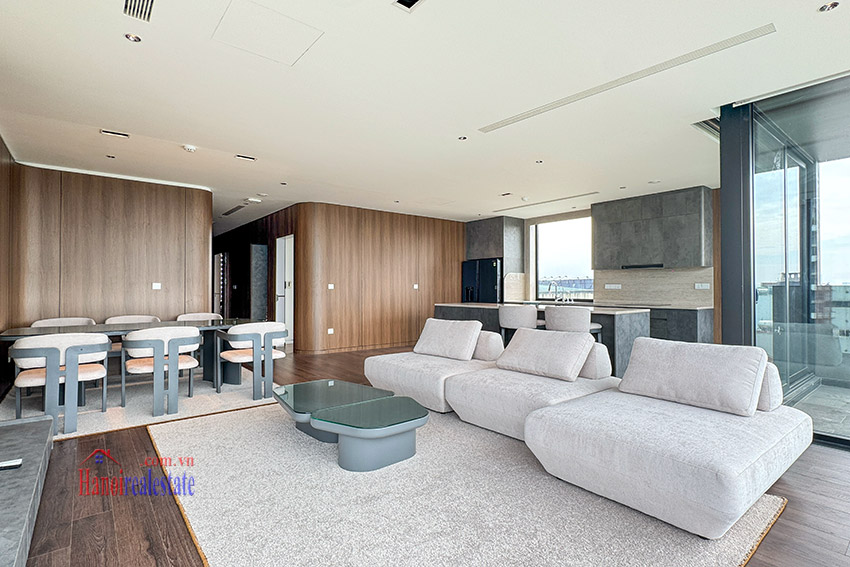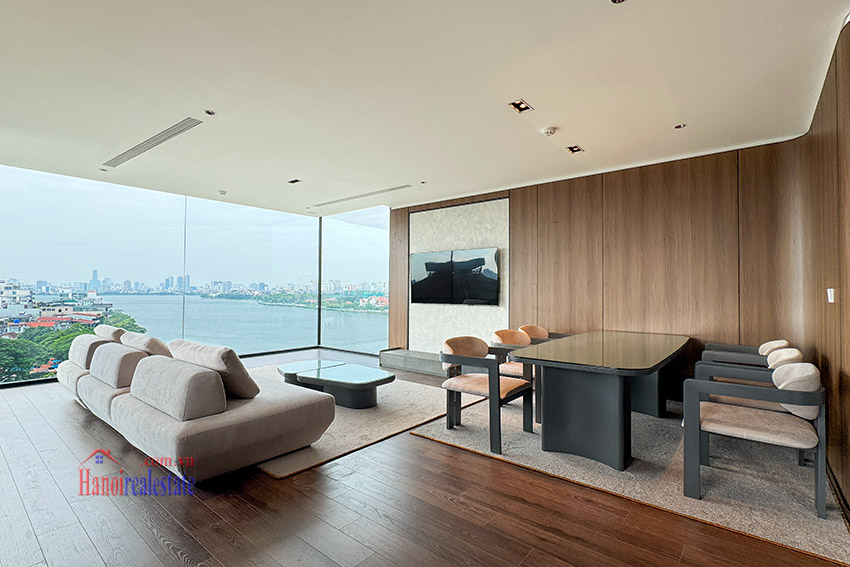 Perched on the 7th floor of a brand-new building along the vibrant Xuan Dieu Street, this 130m² apartment offers unobstructed panoramic views of West Lake – where shimmering water meets the cool breeze every morning.