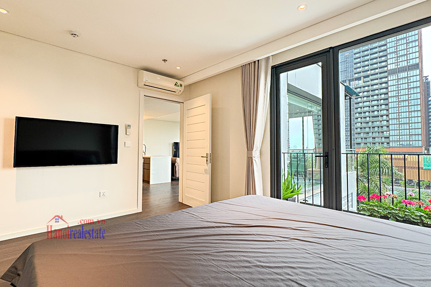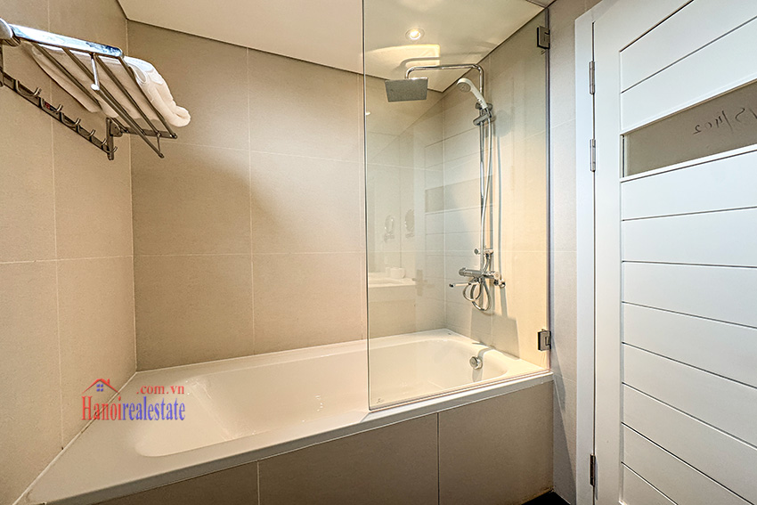 Situated on a street in Tay Ho, the property sits in a relatively quiet residential section. It is within walking distance (approximately 2 minutes) to a nearby park. The surrounding area includes restaurants, cafes, gyms, swimming pools, and international schools, which are frequent priorities for those searching apartment rent Tay Ho.