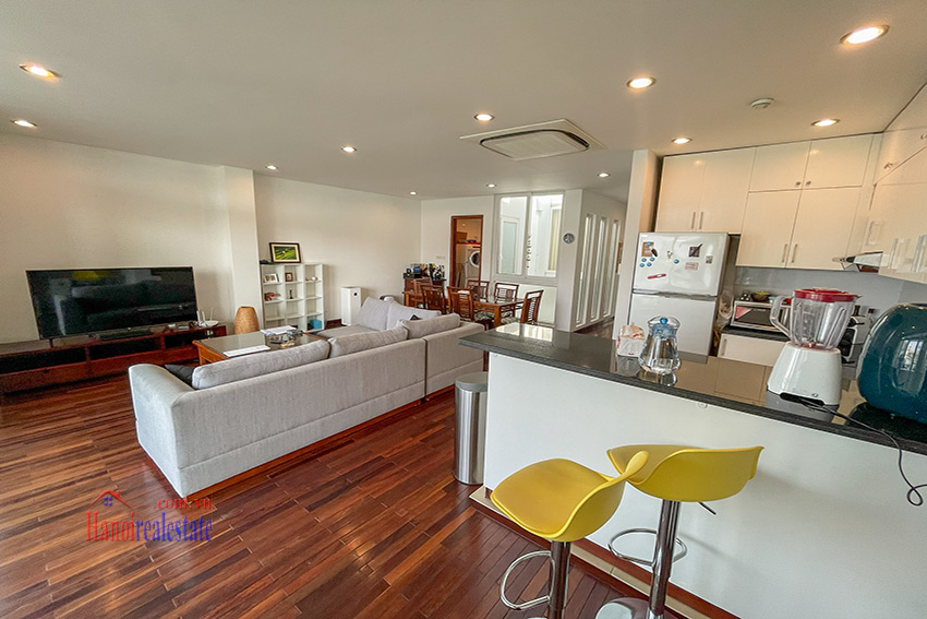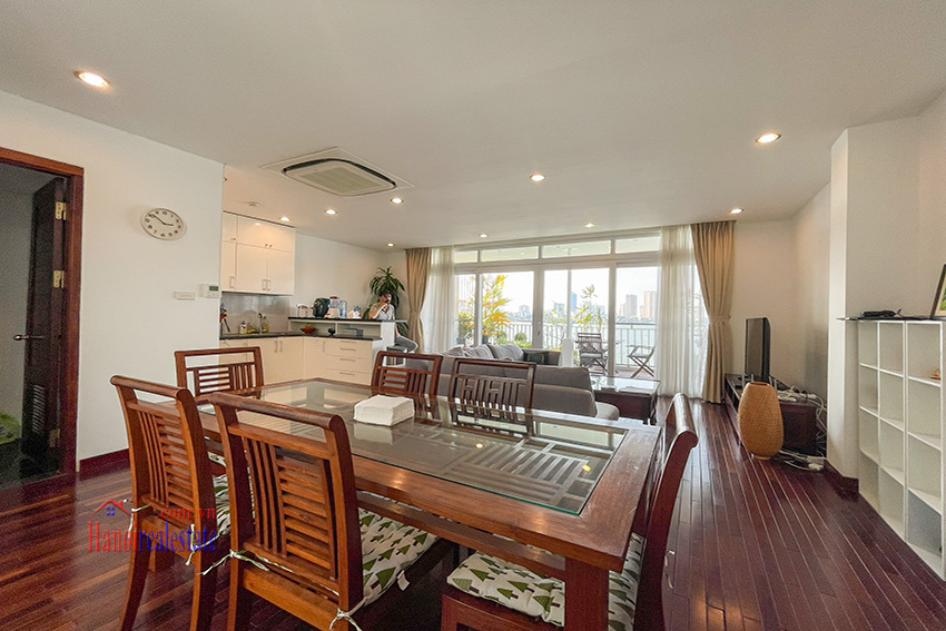 Top-floor apartment for rent with stunning sunset views over West Lake, located in the desirable Tay Ho area.