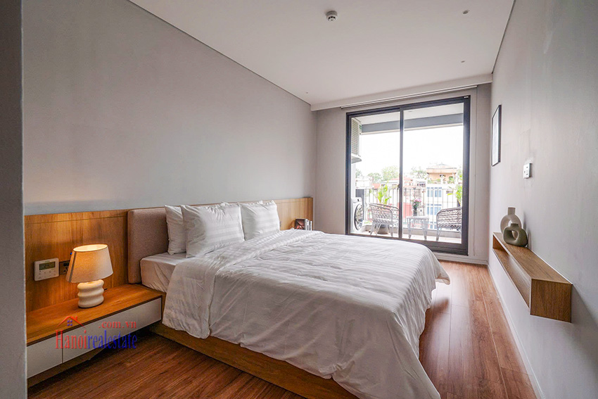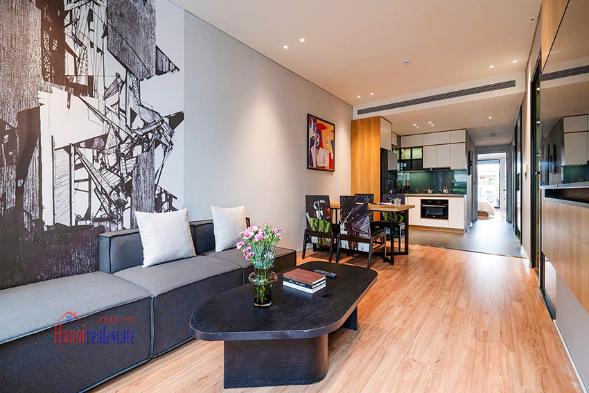 Discover modern living in this beautifully designed apartment located in a brand-new building in Truc Bach, with direct car access for your convenience.
