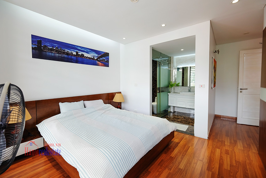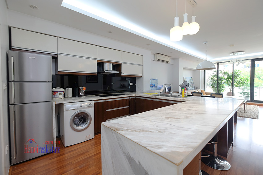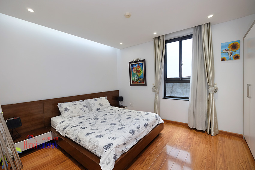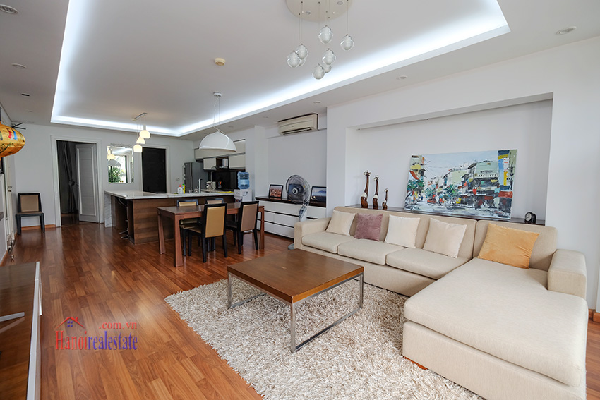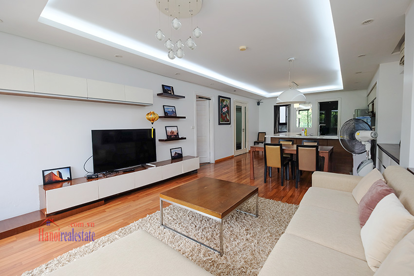 This modern apartment is situated in a well-maintained building on Lac Chinh Street, offering direct car access and just a few steps from Truc Bach Lake. The apartment has a living area of 100m², featuring a bright living room with floor-to-ceiling windows leading to a balcony, a well-equipped kitchen with ample storage, 2 good-sized bedrooms with walk-in wardrobes, and 2 bathrooms. The apartment comes fully furnished and includes hardwood flooring throughout, along with a washer-dryer combination.