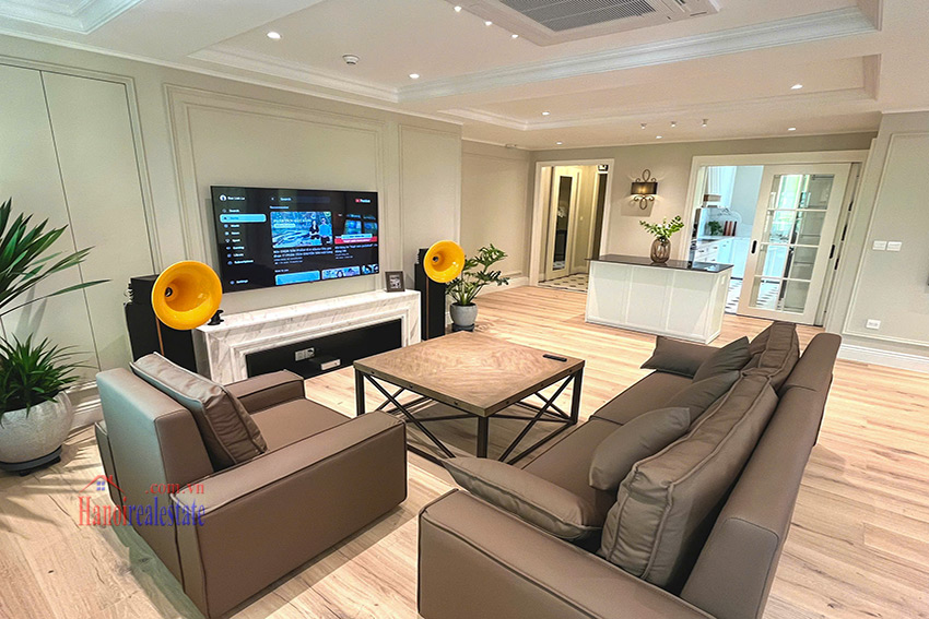 ✅ Area: 150m² (usable) ✅ 03 enclosed bedrooms, 02 modern bathrooms ✅ Spacious living room with large balcony and beautiful open view ✅ Fully equipped kitchen: side-by-side refrigerator, built-in oven, extractor hood, induction hob… ✅ Separate washer & dryer, inverter air conditioning (ducted/multi) in every room ✅ Sophisticated color tones, European contemporary style