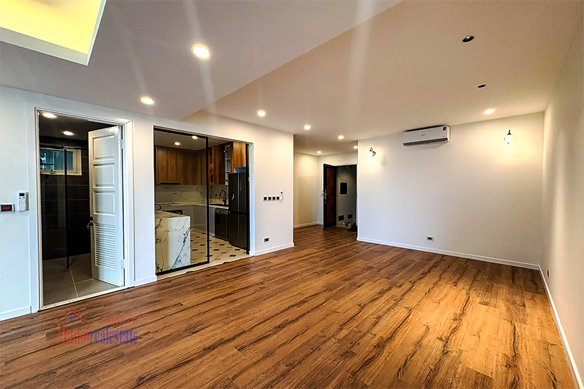 Located within the established E1 tower of the Ciputra International City, this 123 sqm apartment offers a spacious living environment suitable for families. The unit has been recently renovated with a focus on a minimalist and contemporary aesthetic, featuring neutral tones and high-quality wood-textured flooring throughout the main living areas.