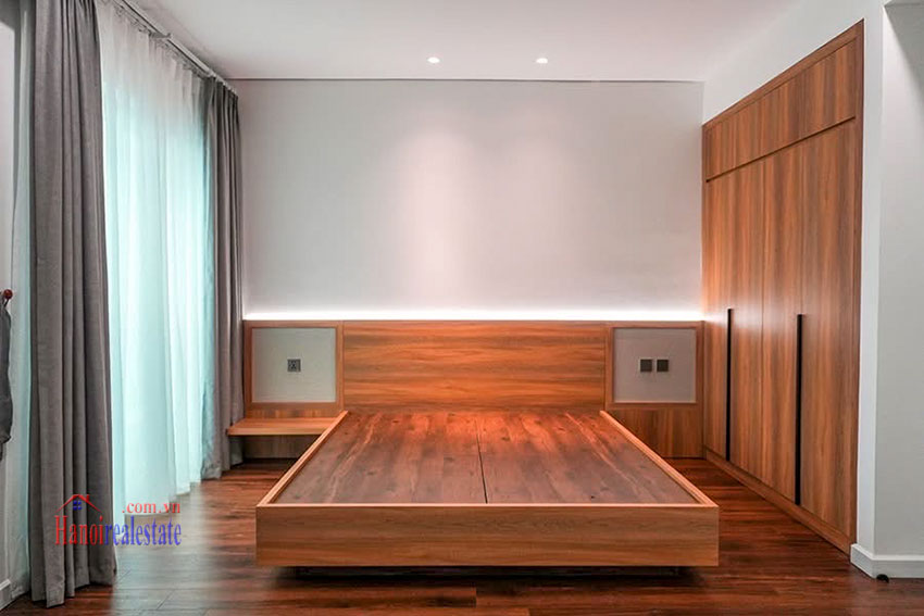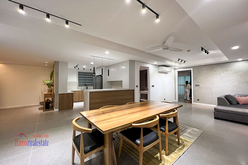 123sqm renovated 3-bedroom apartment for rent in E1 Ciputra. Open kitchen design, natural wooden...