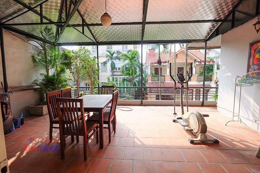 The house comes fully furnished and also offers a spacious top-floor terrace, ideal for outdoor relaxation or entertaining. It is well suited for a small family or professional sharers seeking a peaceful living environment in Tay Ho.