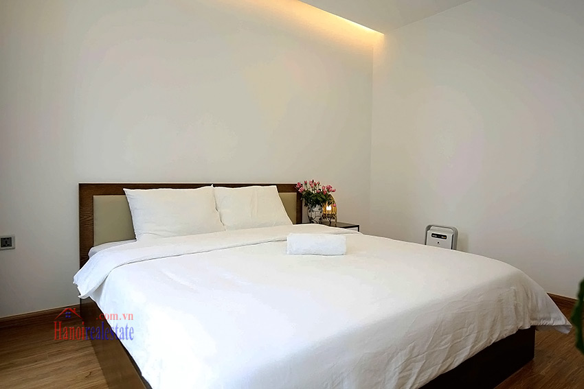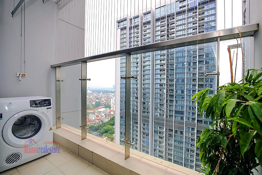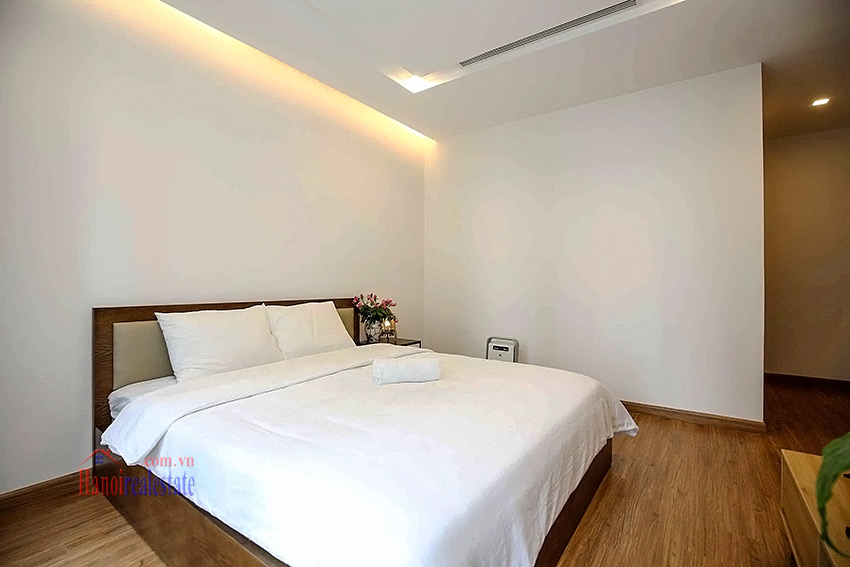 Căn hộ 120m² này nằm ở tầng cao của tòa nhà M1, mang đến tầm nhìn thoáng đãng ra hồ Ngọc Khánh từ ban công rộng rãi có thể đi ra từ phòng khách và phòng ngủ.