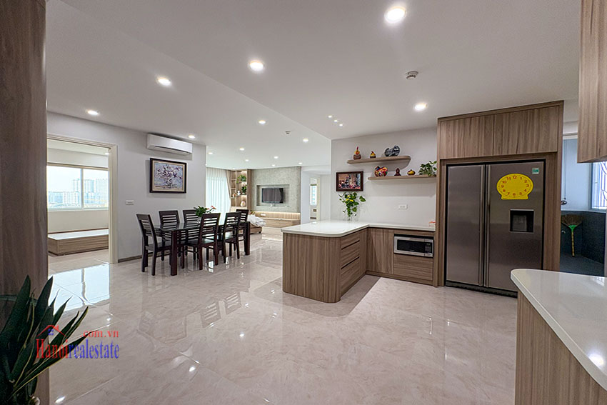 Căn hộ tọa lạc tại tòa E thuộc khu đô thị quốc tế Ciputra, sở hữu diện tích rộng rãi lên tới 153m². Đây là sản phẩm vừa được hoàn thiện quá trình cải tạo tổng thể, mang đến không gian sống mới chuẩn cao cấp, đáp ứng nhu cầu khắt khe của khách thuê là chuyên gia hoặc hộ gia đình.