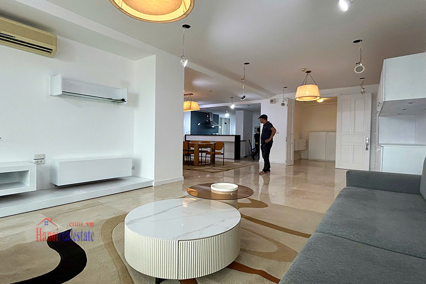 Căn hộ 123m2 cho thuê tại E1 Ciputra. Thiết kế 3 phòng ngủ, bếp mở hiện đại, tầng cao view...