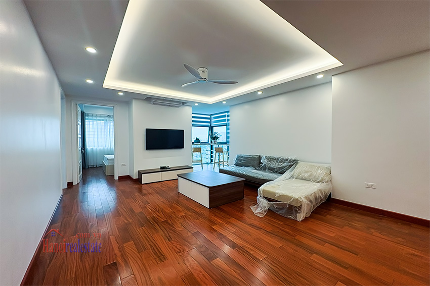 Với diện tích sử dụng 123m2, căn hộ được phân chia hợp lý với 3 phòng ngủ và 2 phòng vệ sinh. Điểm nhấn đặc biệt của các căn hộ này là việc làm mới hoàn toàn hệ thống điện và thay thế trang thiết bị vệ sinh cao cấp. Không gian nội thất đi theo hướng hiện đại, ấm cúng với sàn gỗ màu trầm kết hợp cùng hệ thống đèn led âm trần tinh tế.