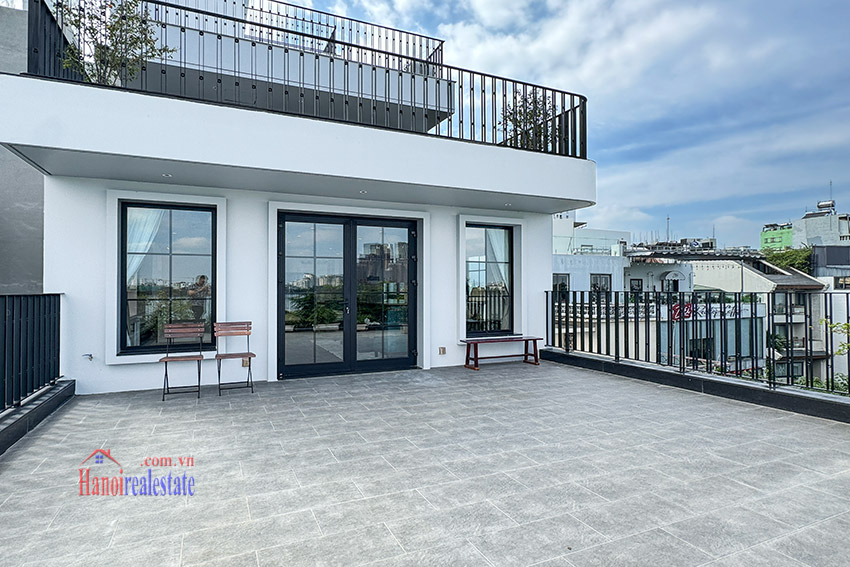 • Sân thượng riêng với tầm nhìn tuyệt đẹp hướng Tây Hồ, lý tưởng để thư giãn.