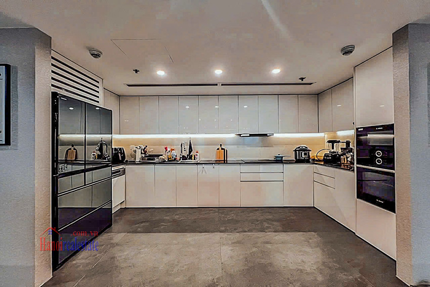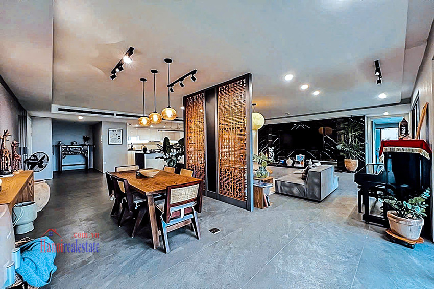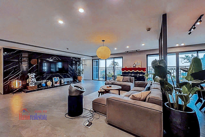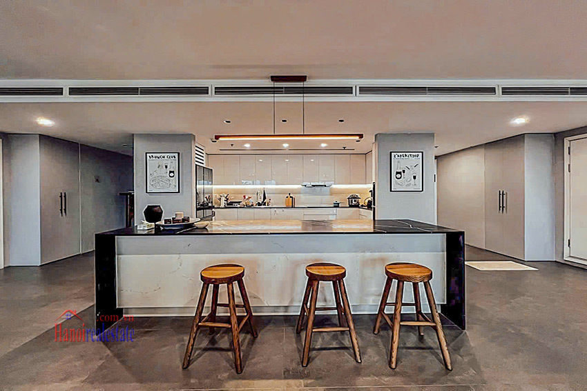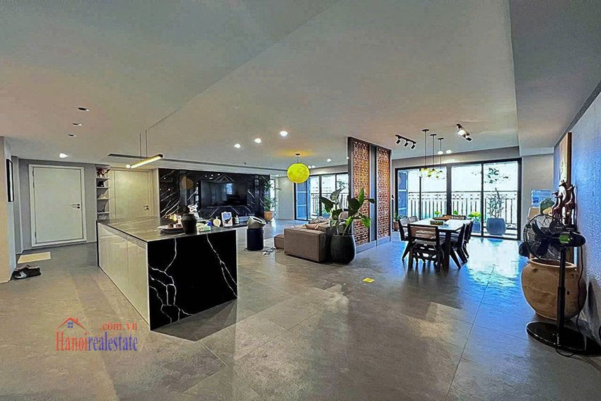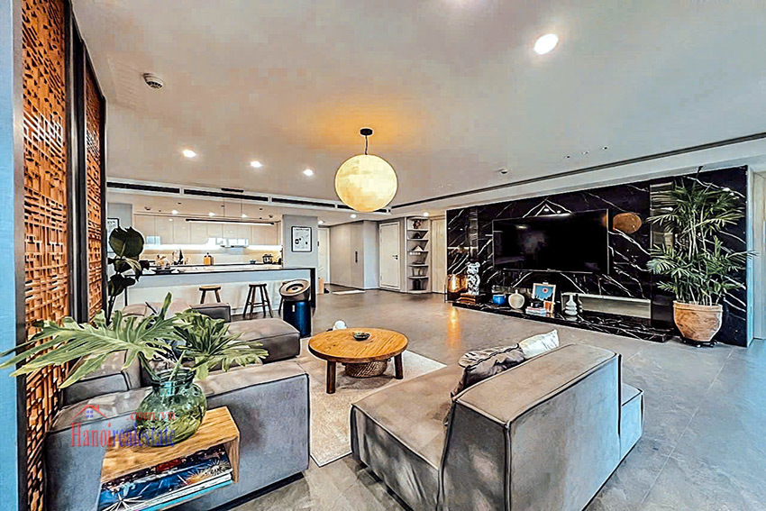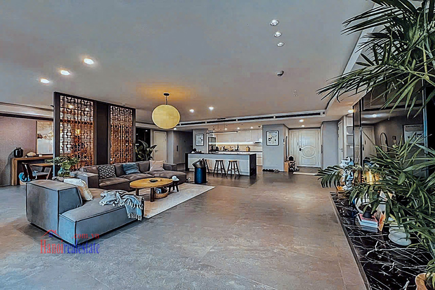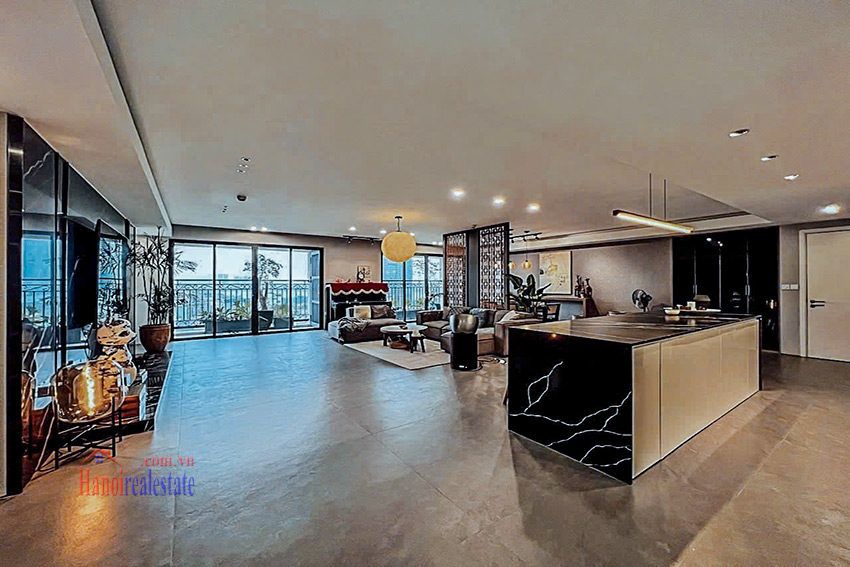 Căn hộ có diện tích 300m², thiết kế gồm 4 phòng ngủ và 3 phòng vệ sinh, được trang bị đầy đủ nội thất chất lượng cao.
