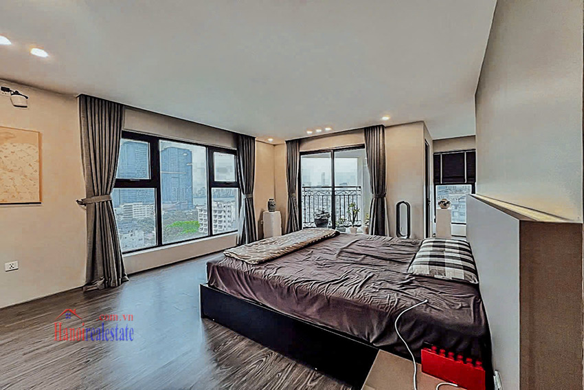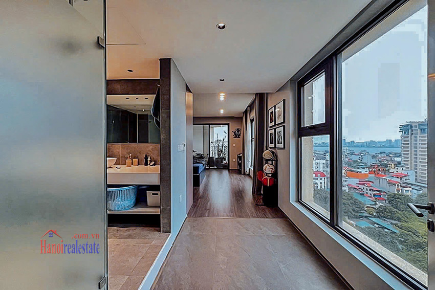 Vị trí tầng cao với ban công rộng, mang lại tầm nhìn ra hồ Tây và Nhà hát Opera. Ưu điểm nổi bật: Nội thất đẹp và cao cấp, tất cả các phòng đều có ban công rộng nhìn ra hồ Tây.
