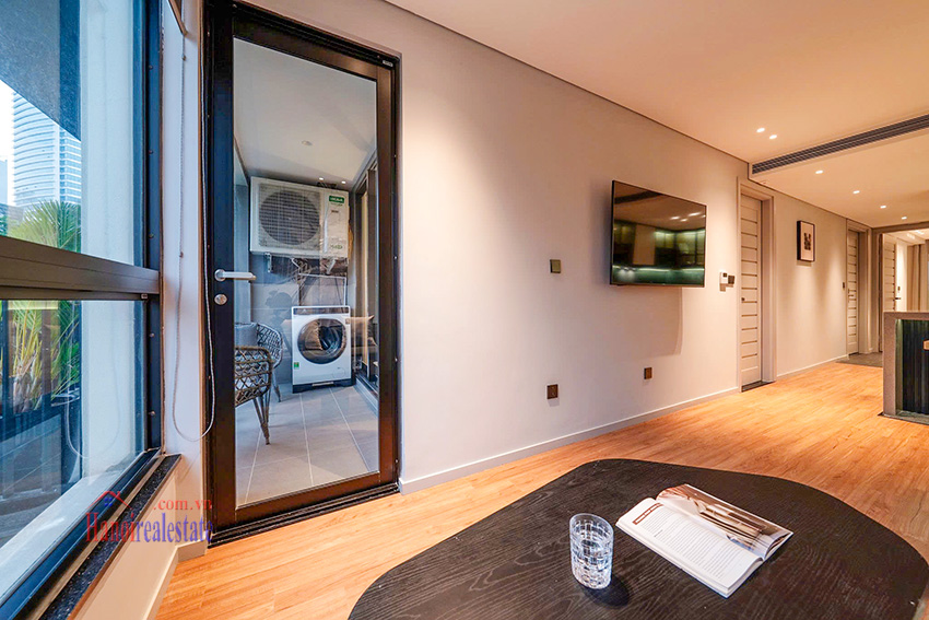 Đặc điểm nổi bật: Điểm nhấn của căn hộ là hệ thống cửa kính lớn tại phòng khách và phòng ngủ giúp tối ưu hóa ánh sáng tự nhiên. Ban công rộng là không gian thư giãn lý tưởng với tầm nhìn thoáng đãng ra hồ. Khu vực phố Lạc Chính đảm bảo sự riêng tư, ít tiếng ồn, phù hợp cho người nước ngoài hoặc gia đình nhỏ sinh sống.