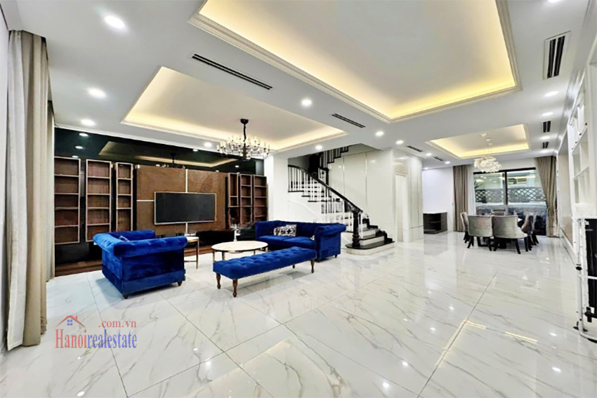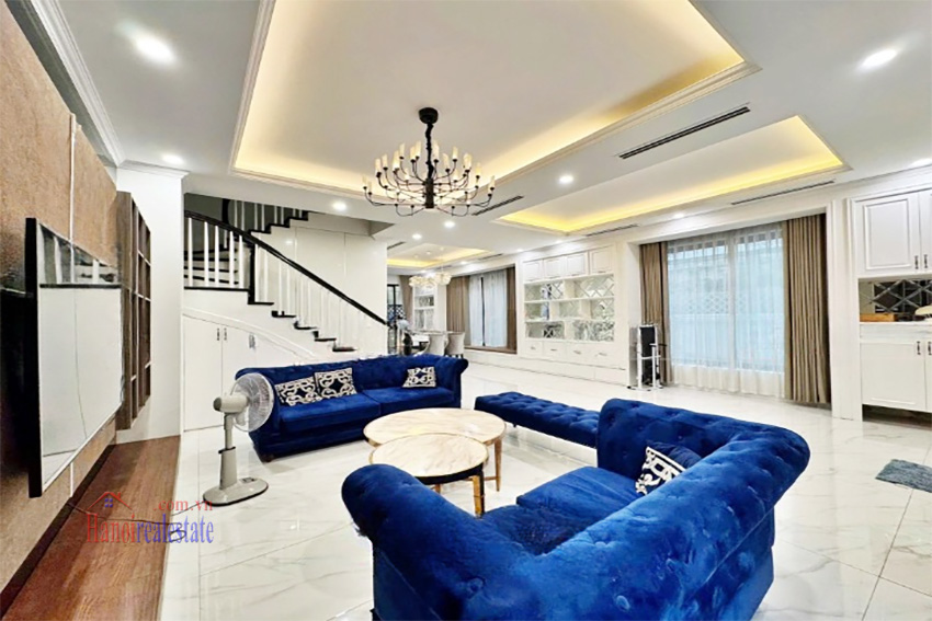 This semi-detached villa, located in the highly sought-after Vinhomes Riverside urban area in Long Bien, offers a comprehensive and high-standard living solution. The property is fully furnished with modern equipment and fixtures, making it ready for immediate occupancy.