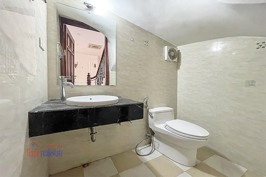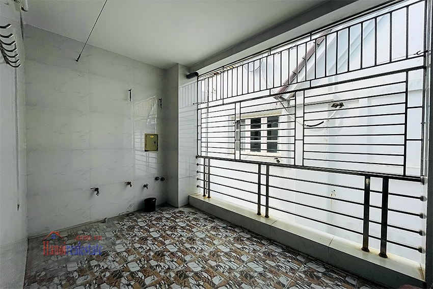 The property includes a tiled balcony on the upper level with iron railings, offering an open view of the Anh Dao neighborhood’s greenery. This space is suitable for drying laundry or setting up a small outdoor seating area.